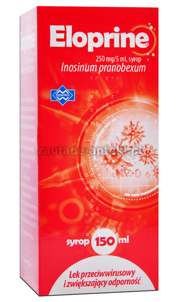 Eloprine 250 mg/5 ml syrop (Inosinum pranobexum) wykazuje działanie przeciwwirusowe i zwiększa odporność.